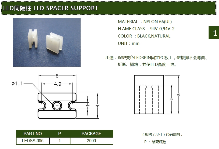 LED間隔柱LEDSS-096保護雙色3pin LED燈固定在PCB板上,使LED燈接腳不會彎曲、折斷、短路,并使LED燈高度一致。