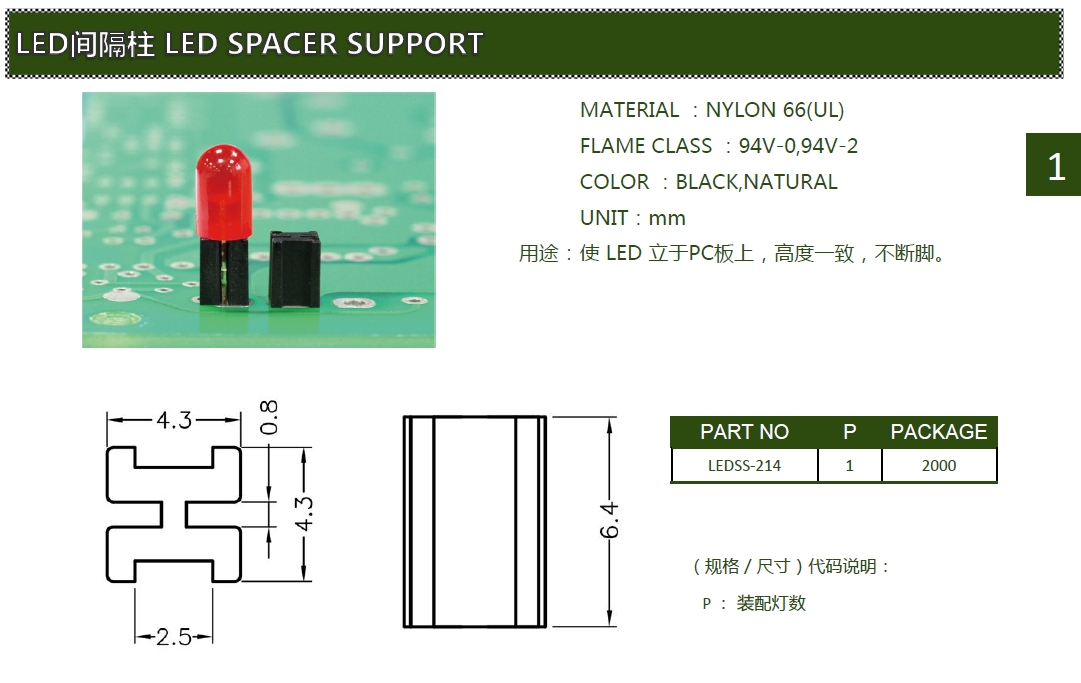 LED間隔柱LEDSS-214,保護(hù)LED燈柱固定在PCB板上,使LED燈柱接腳不會(huì)彎曲、折斷、短路,并使LED高度一致。