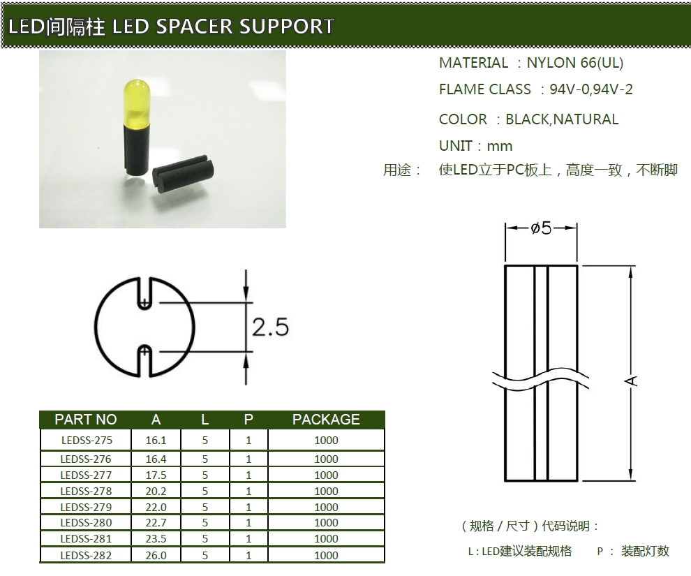 LED間隔柱LEDSS-278,安裝LED燈柱在PCB板上,高度一致,不斷腳。