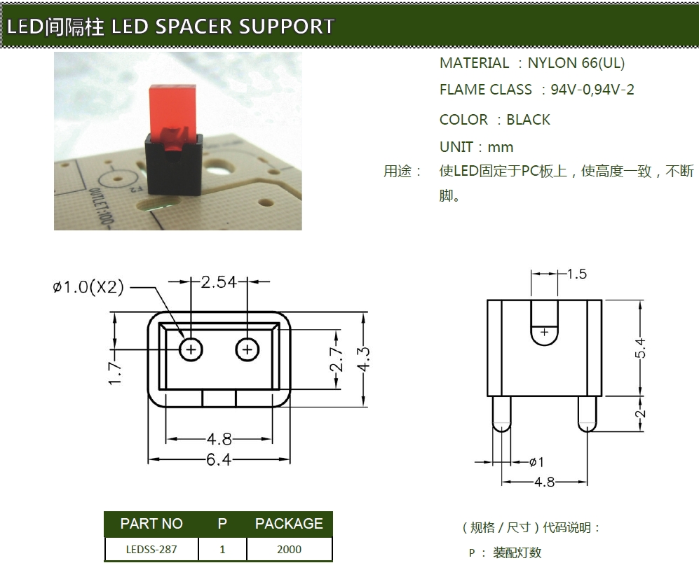 LED間隔柱LEDSS-287,使LED燈柱固定在PCB板上,使LED燈柱高度一致,不斷腳。