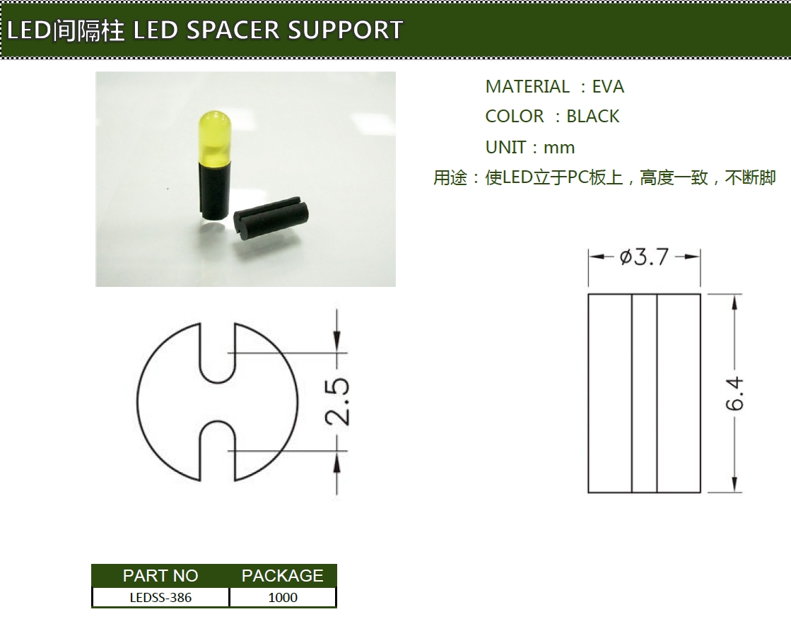 LED間隔柱LEDSS-386,使LED燈柱固定在PCB板上,使LED燈柱高度一致,LED燈柱接腳不會彎曲、折斷、短路。
