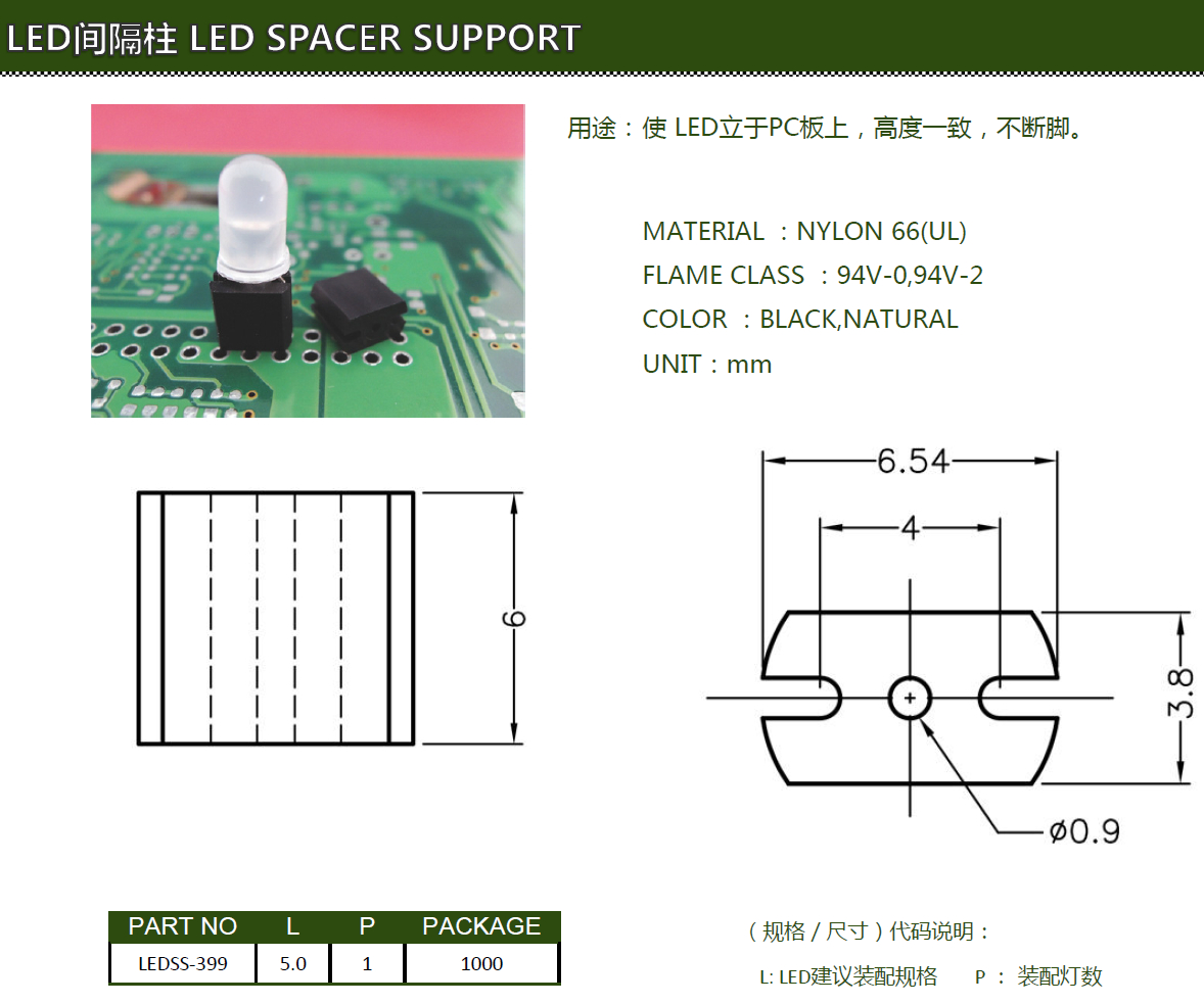 LED間隔柱LEDSS-399,使LED燈固定在PCB板上,LED燈柱高度一致,不斷腳。