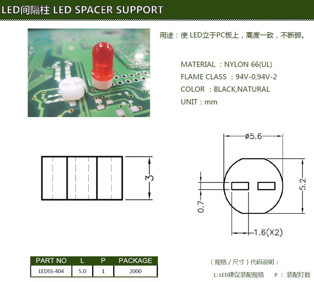 - 英文名稱:LED Spacer Support