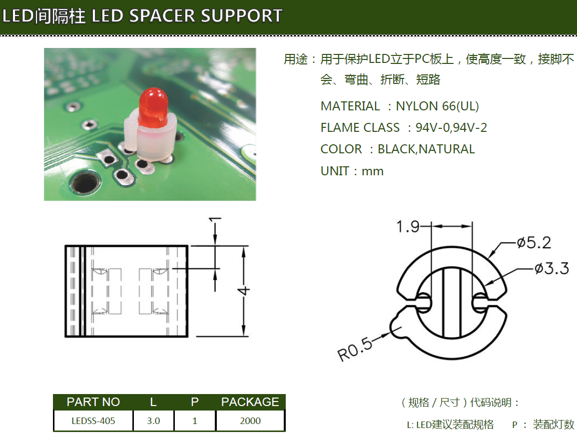 LED間隔柱LEDSS-405,保護(hù)LED燈固定在PCB板上,使LED燈高度一致,接腳不會(huì)彎曲、折斷、短路。