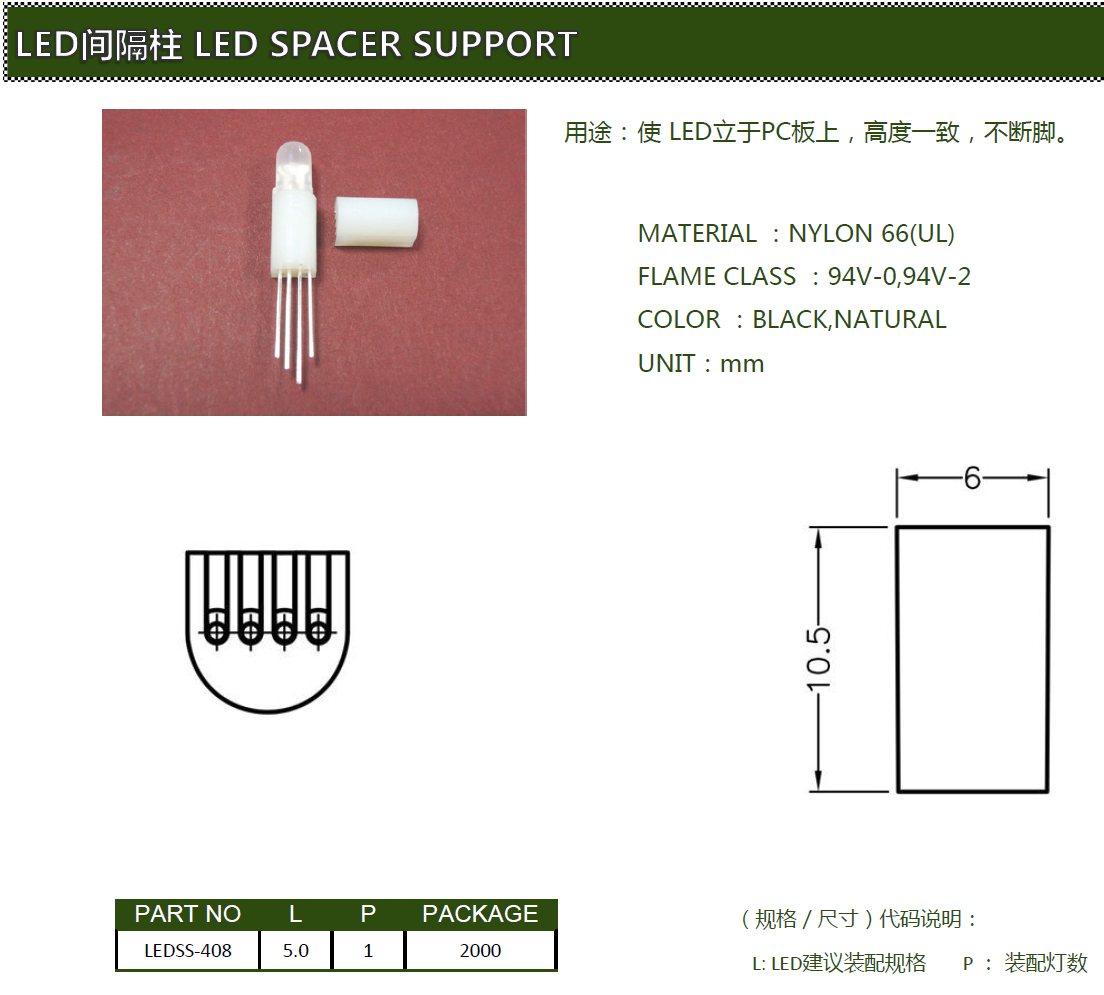 LED間隔柱LEDSS-408,保護LED燈固定在PCB板上,使LED燈高度一致,接腳不會彎曲、折斷、短路。