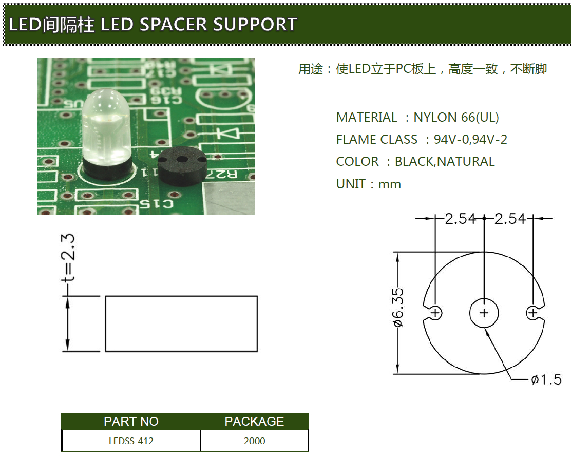 LED間隔柱LEDSS-412,使LED燈柱固定在PCB板上,高度一致,不斷腳。