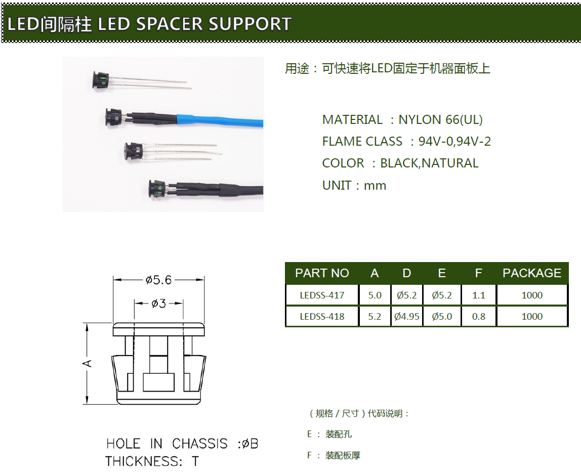 - 英文名稱:LED Spacer Support