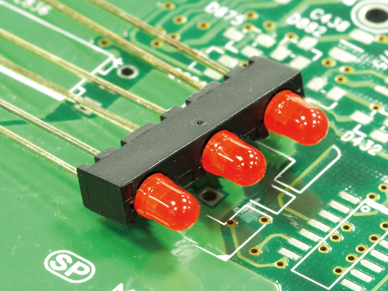 使?3 mm LED成 90° 焊于電路板上,高度一致,有定位腳,不傾斜。