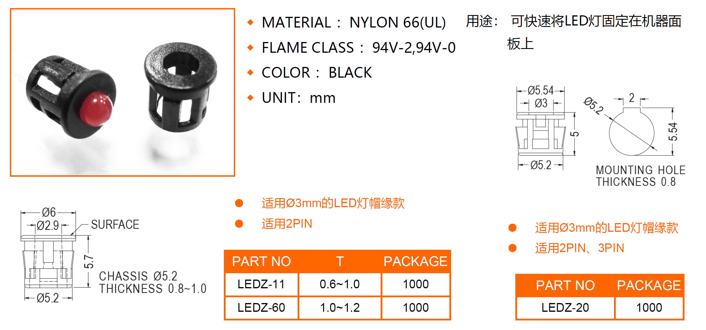 LEDZ-11、LEDZ-20、LEDZ-60?LED Holder