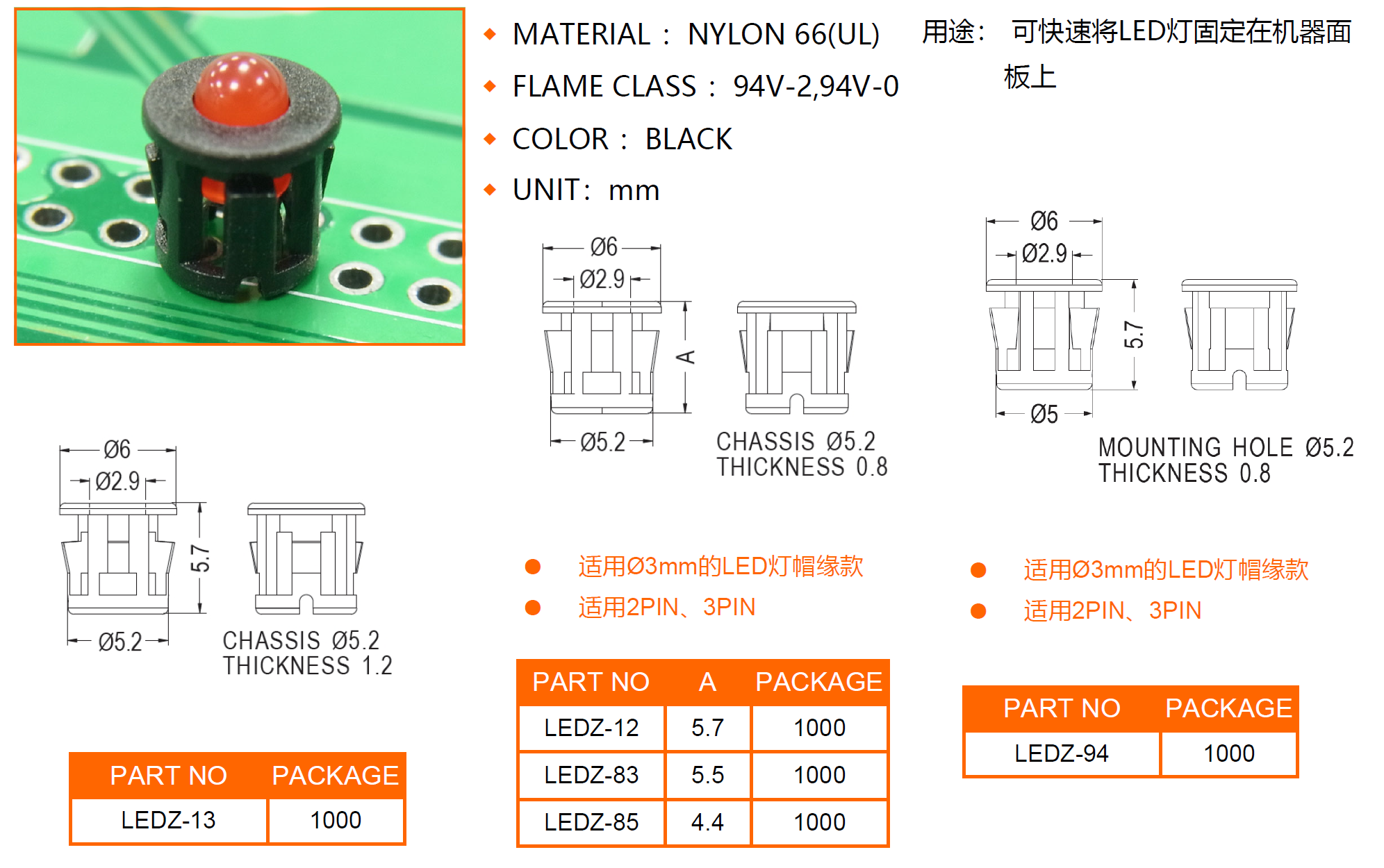 LEDZ-12、LEDZ-13、LEDZ-83、LEDZ-85、LEDZ-94?LED Holder