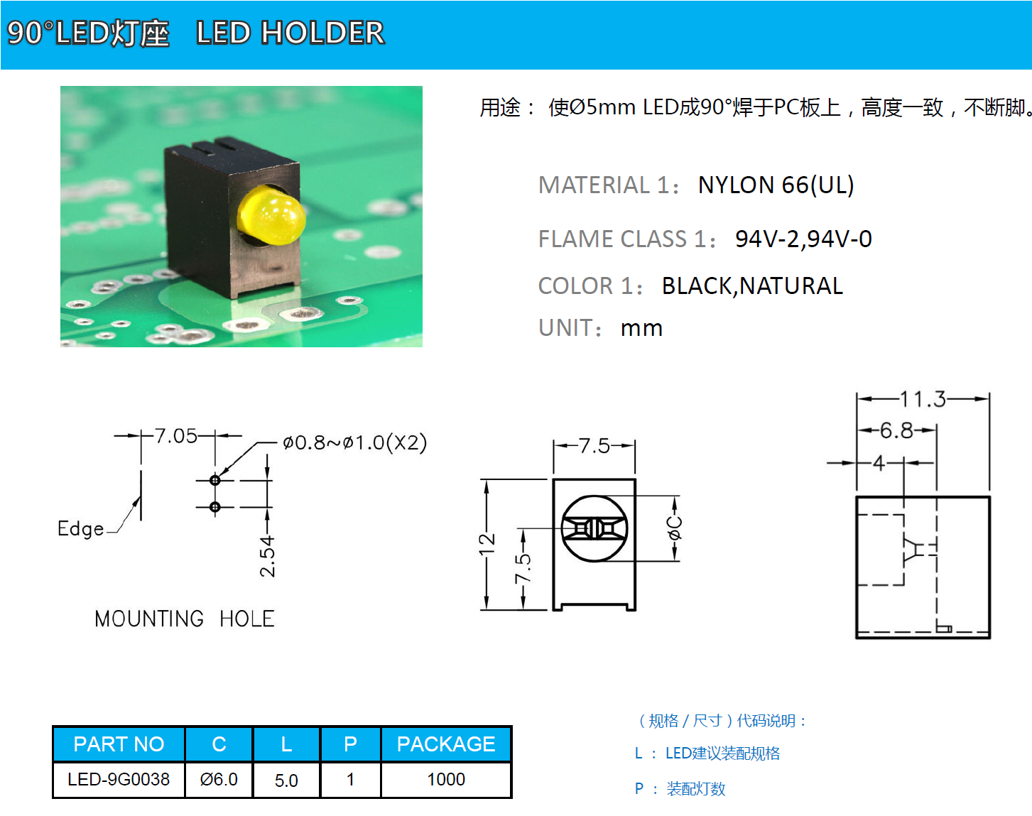 LED-9G0038 90度LED燈座 直角LED座 90°LED燈固定座 90°LED Mount