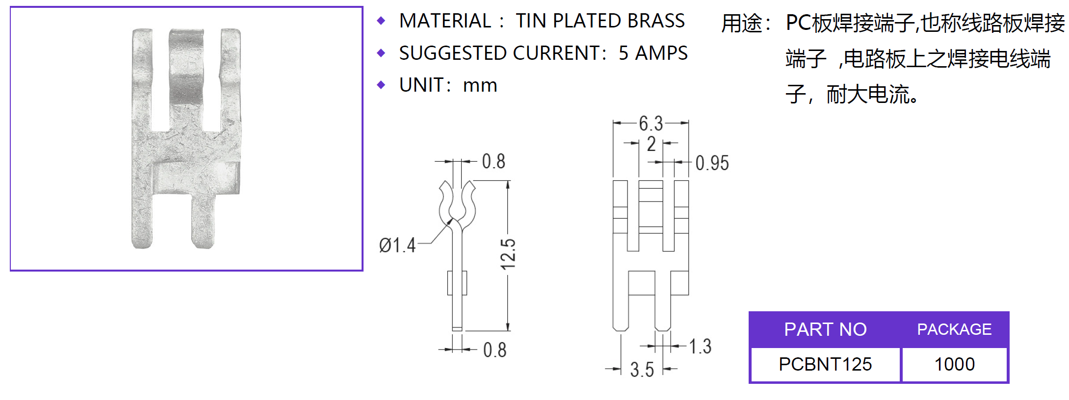 PC板焊接端子,也稱線路板焊接端子 ,電路板上之焊接電線端子,耐大電流。