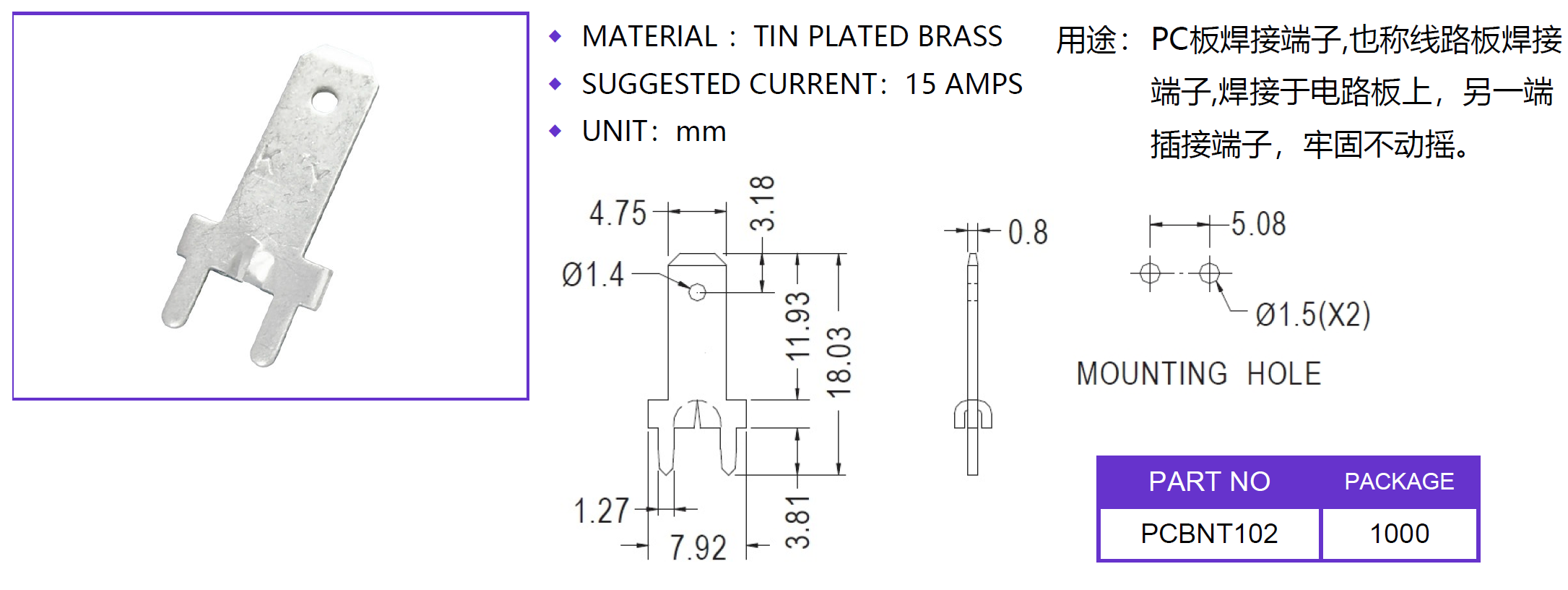 - 產(chǎn)品名稱:PC板焊接端子