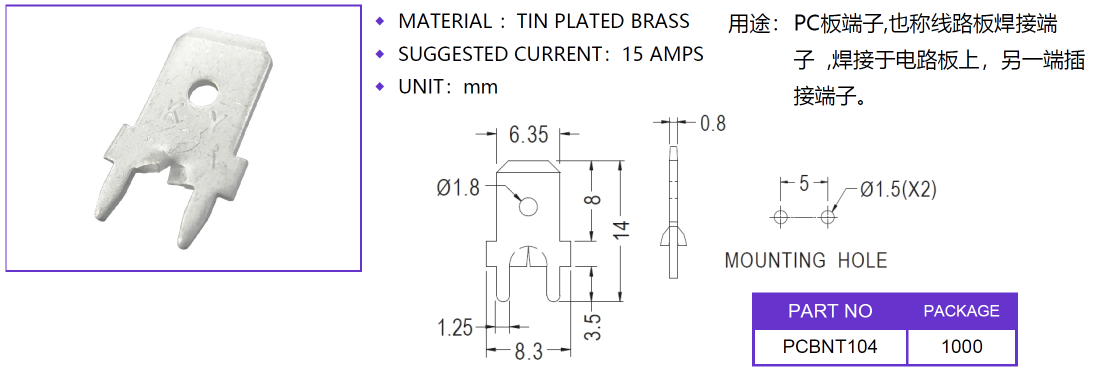 PC板焊接端子,也稱線路板焊接端子 ,焊接于電路板上,另一端插接端子,牢固不動(dòng)搖。