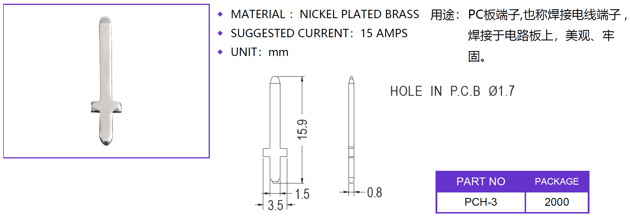 PC板焊接端子,也稱線路板焊接端子 ,電路板上之焊接電線端子,美觀、牢固。