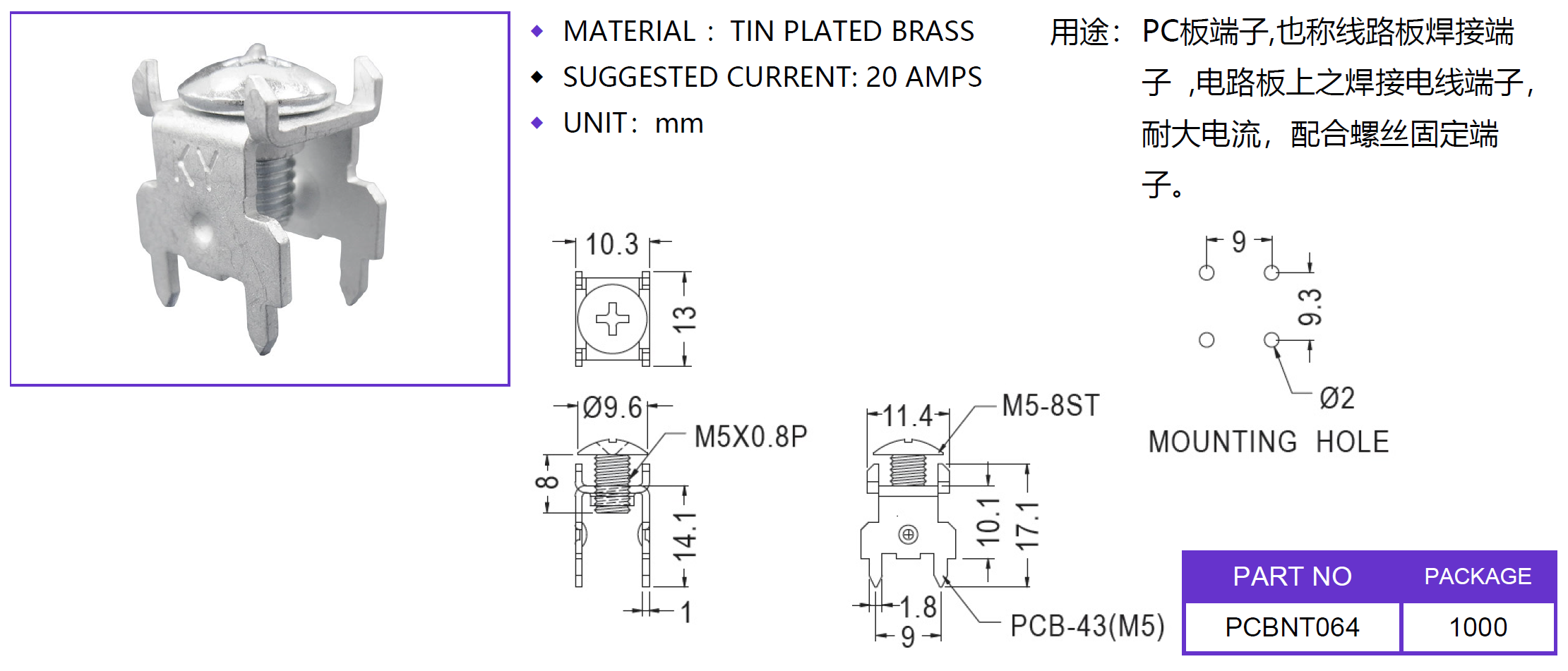 - 英文名稱:PCB Terminal