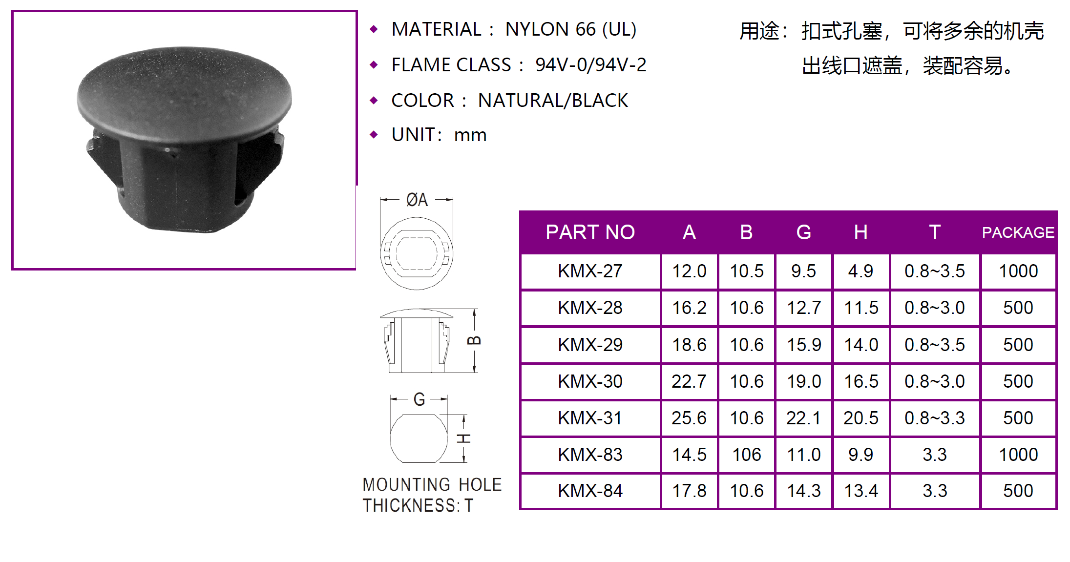 扣式孔塞 KMX-87 KMX-93