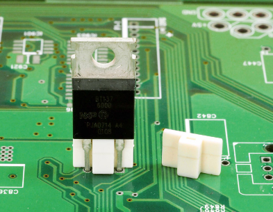 保護(hù)晶體立于PC板上,使接腳不彎曲、折斷、短路、且高度一致。