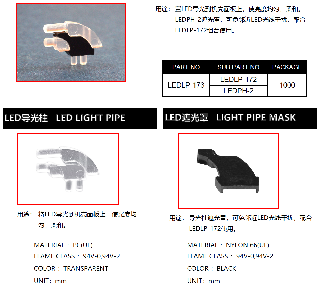 遮蔽導(dǎo)光柱,避免鄰近LED光線干擾,搭配LEDLP-172使用。