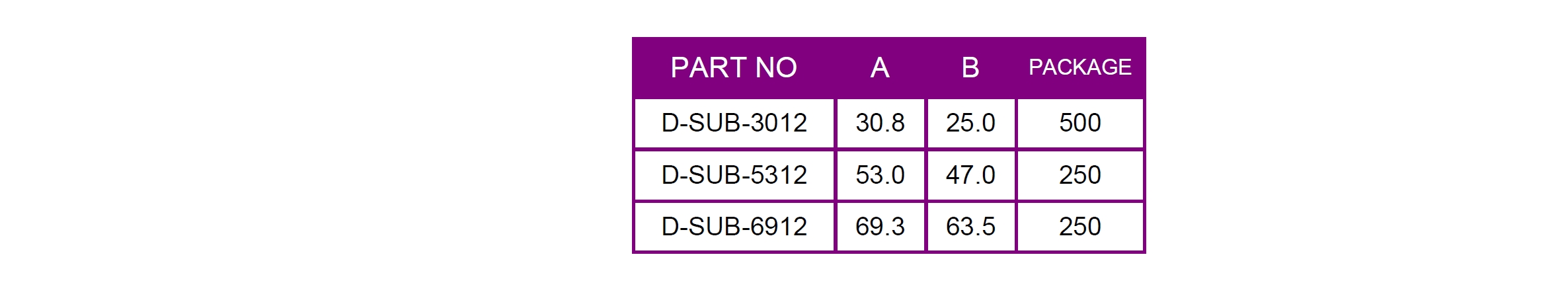 D-SUB-3012、D-SUB-5312、D-SUB-6912、D-SUB-3912