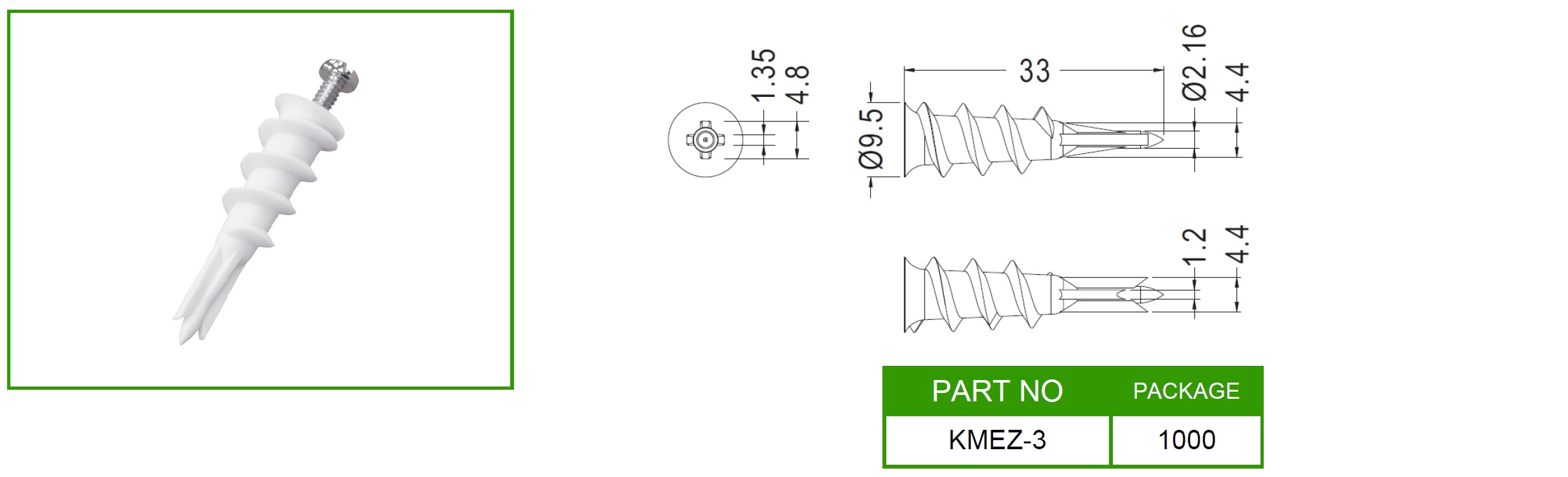 用于螺絲與石膏墻壁固定,結(jié)合力強(qiáng)。