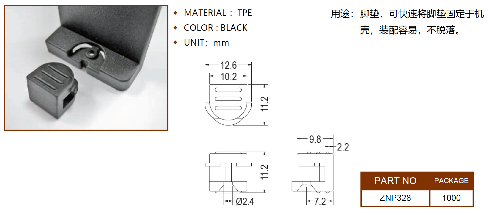 可快速將腳墊固定于機殼,裝配容易,不脫落。