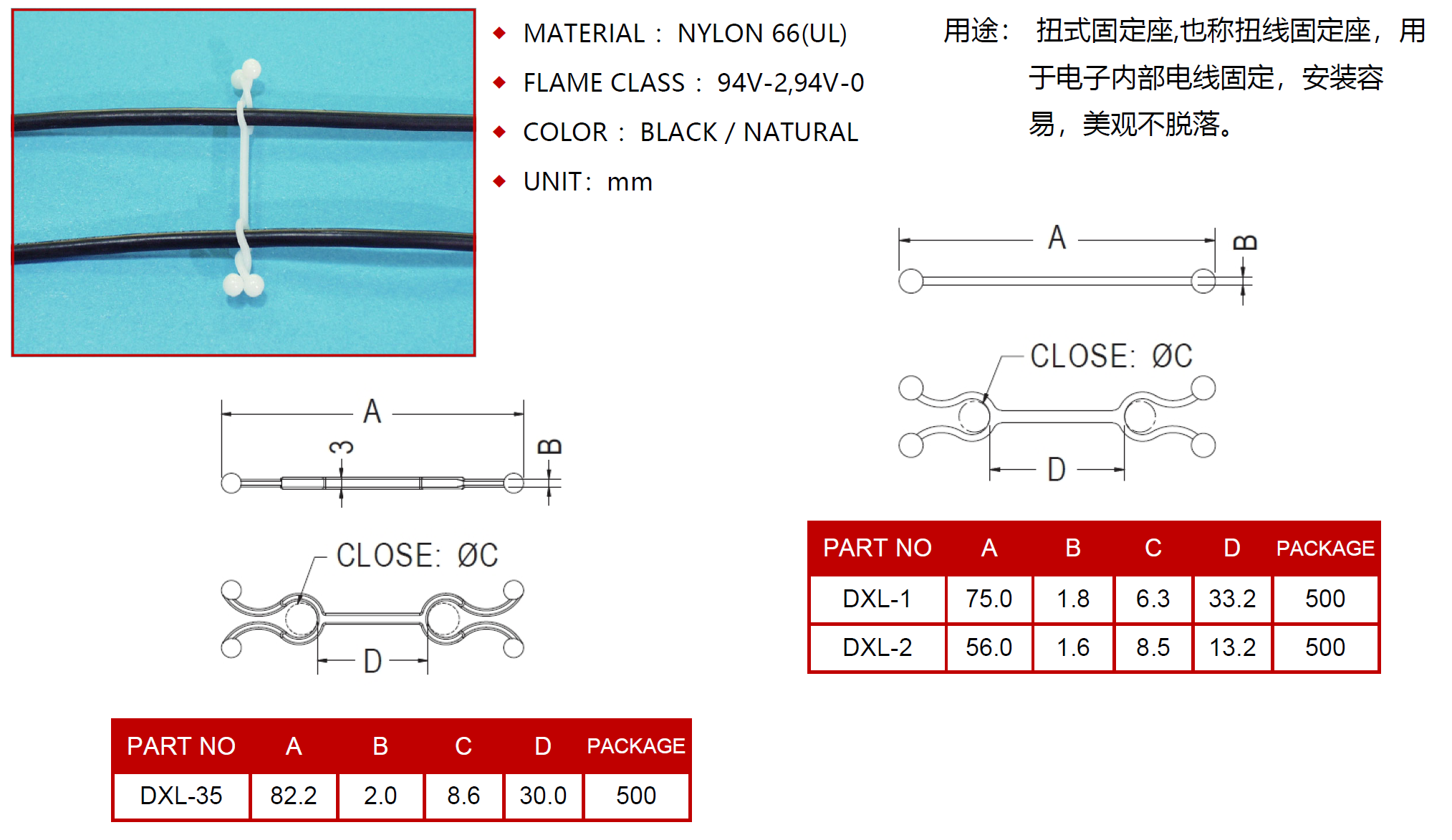 用于電子內部電線固定,安裝容易,美觀不脫落。