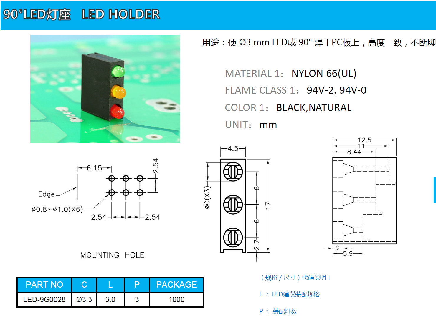 90°LED燈座
