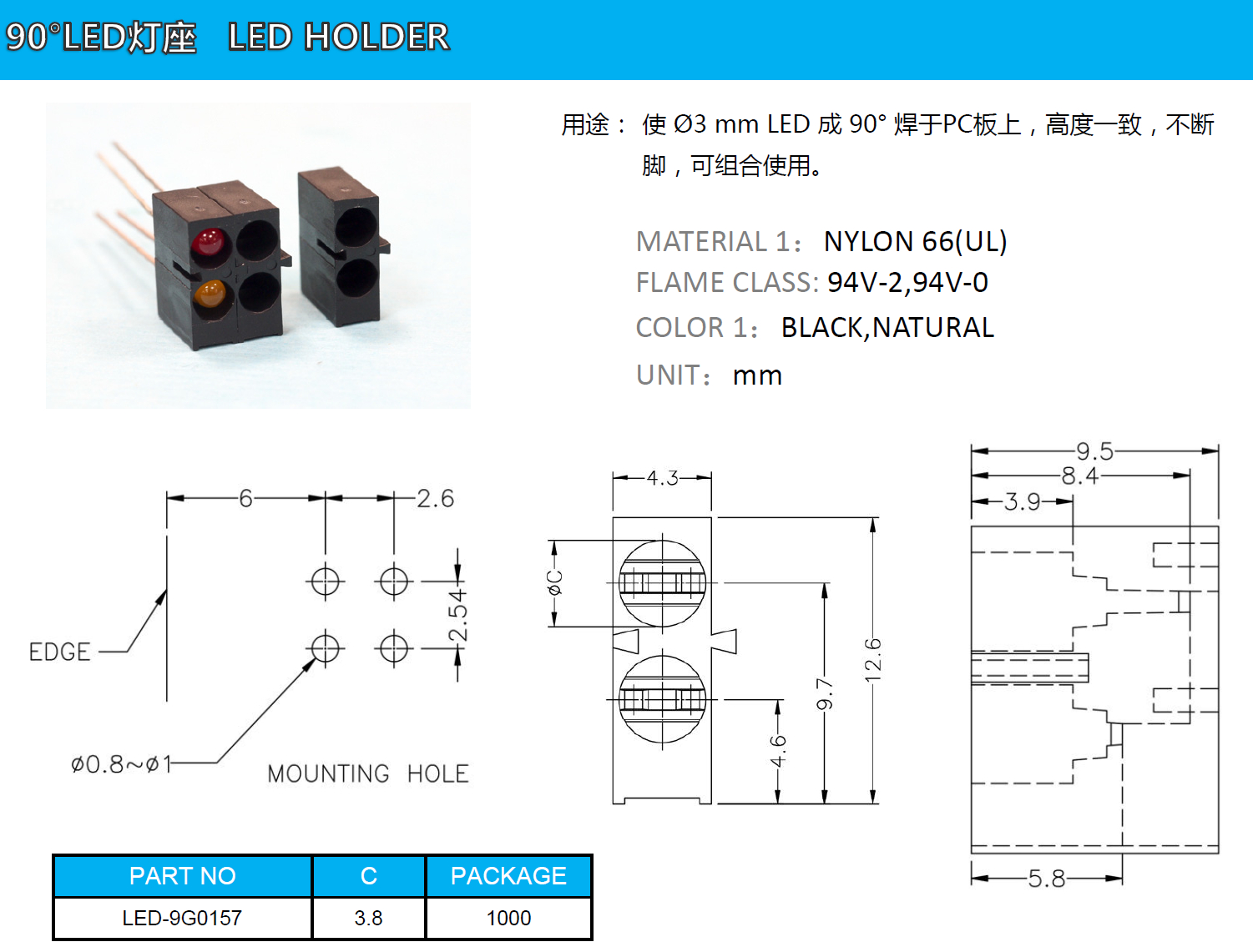 90°LED燈座