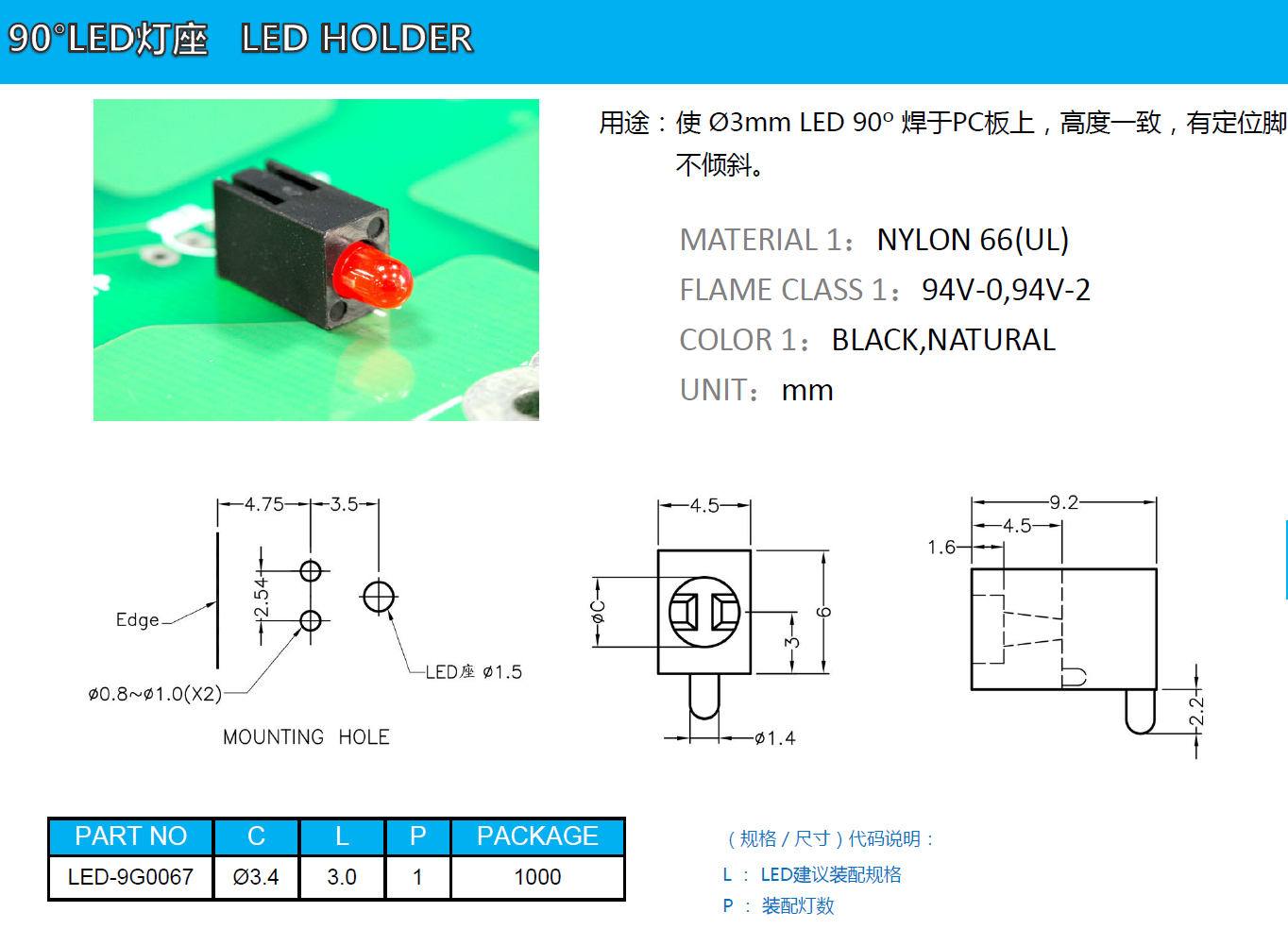 90°LED燈座