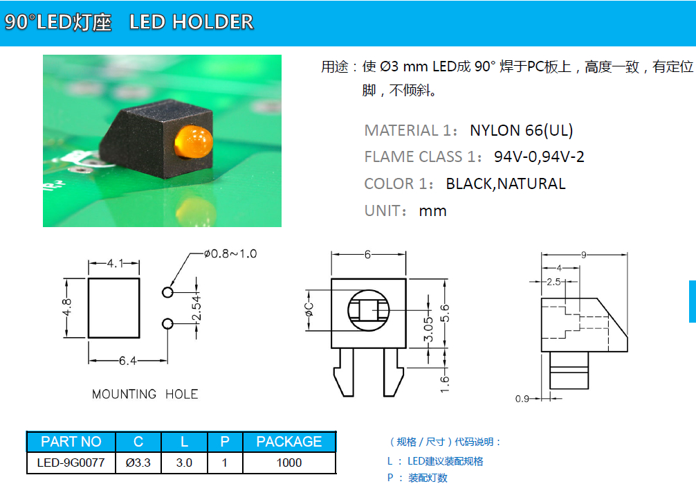 90°LED燈座