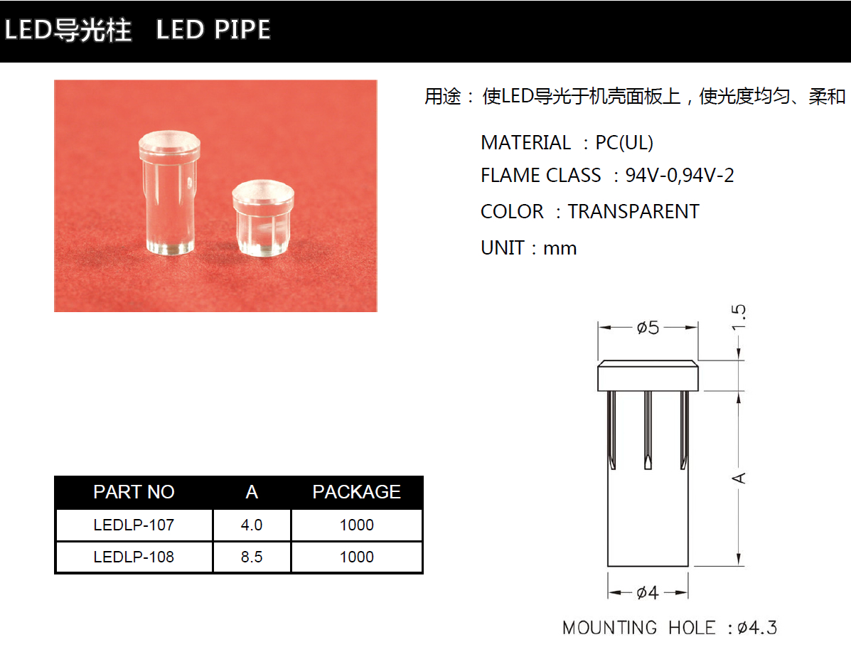 LED導(dǎo)光柱LEDLP-107,將LED燈柱導(dǎo)光到機(jī)箱面板上,使LED燈柱亮度均勻、柔和。