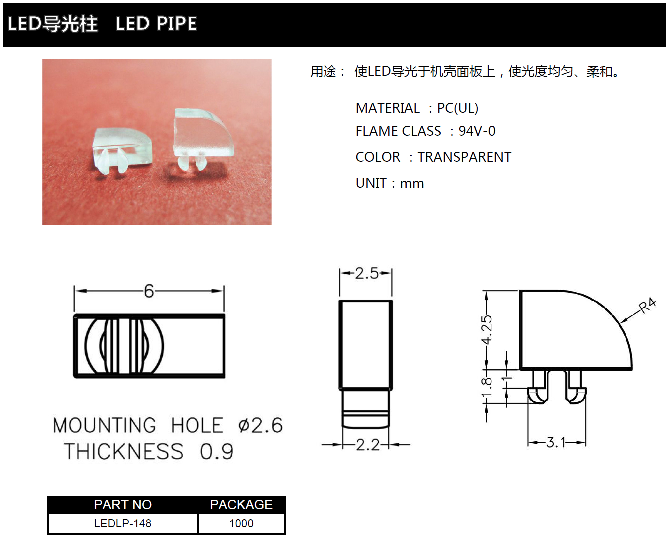 LED導(dǎo)光柱LEDLP-148,將LED燈柱導(dǎo)光到機(jī)箱面板上,使LED燈柱亮度均勻、柔和。