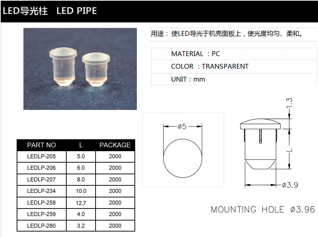 我們主要有產(chǎn)品有LED導(dǎo)光柱,也稱PC導(dǎo)光柱,導(dǎo)光柱,LED導(dǎo)光罩,LED導(dǎo)光帽,Light Pipe,導(dǎo)光蓋我們是PC導(dǎo)光柱生產(chǎn)廠家,LED導(dǎo)光柱批發(fā),透光柱,導(dǎo)光條,導(dǎo)光棒等。